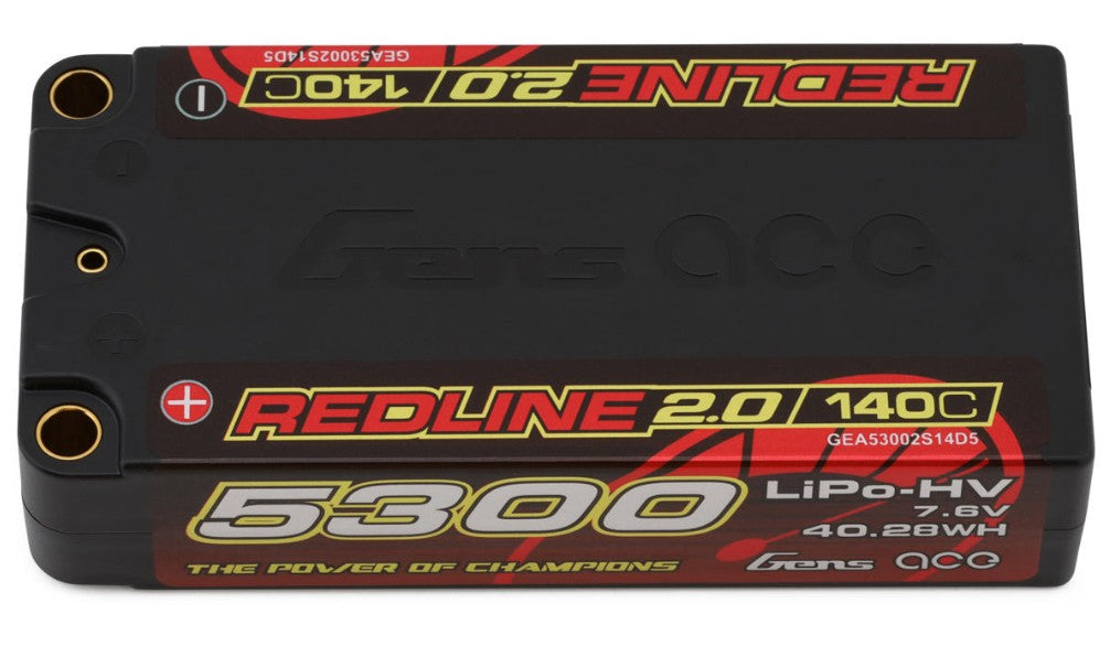 GEA53002S14D5 Gens Ace Redline 2.0 2S Shorty LiHV Battery 140C (7.6V/5300mAh) w/5mm Bullets