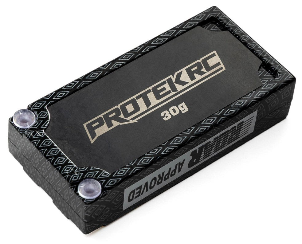 The ProTek R/C Spencer Rivkin 2S 130C Low IR Si-Graphene + HV ULCG Shorty LiPo Battery is a premium-grade power source designed for competitive 1/10th scale racers. Designed in collaboration with Team Associated driver Spencer Rivkin, this high-performance 7.6V 4800mAh shorty pack delivers elite-level power and consistency for serious racers. The case is equipped with a specialized pocket on the bottom for adding optional battery weights, such as the ProTek R/C Battery Weight Set (PTK-5077 or PTK-5078 - sold separately), to further lower the center of gravity and fine-tune chassis performance. The pocket also lets the battery weights sit flush against the battery, keeping them concealed for a clean, professional look. Whether you're running a 2WD or 4WD modified buggy or looking to dominate in the stock class, this ROAR-approved battery provides the punch, runtime, and reliability needed for top-level performance.