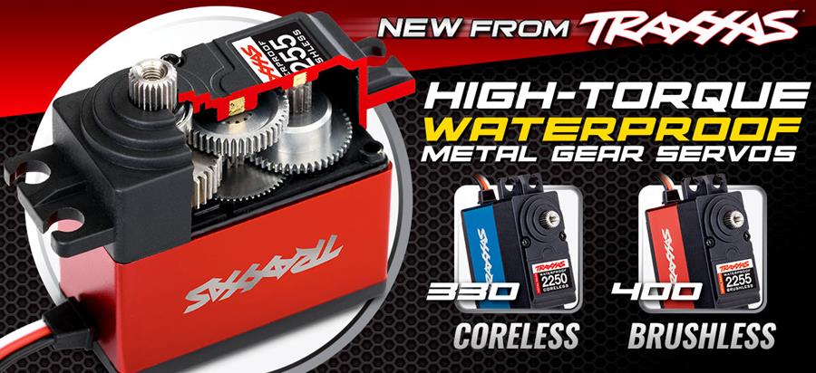 Traxxas new High-Torque servos combine maximum steering authority with a long list of high performance features. Both servos utilize full metal gears, dual ball bearings, and an aluminum center section for added heat dissipation. Traxxas High-Torque servos are fully waterproof, not just “water resistant” with a perfect factory fit in nearly all 1/10 scale Traxxas vehicles. High-Torque servos are fully compatible with Traxxas Stability Management (TSM) and provide noticeably faster steering response than stock servos.