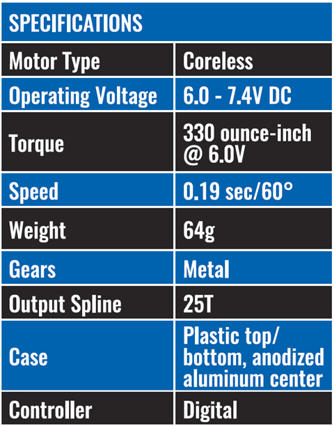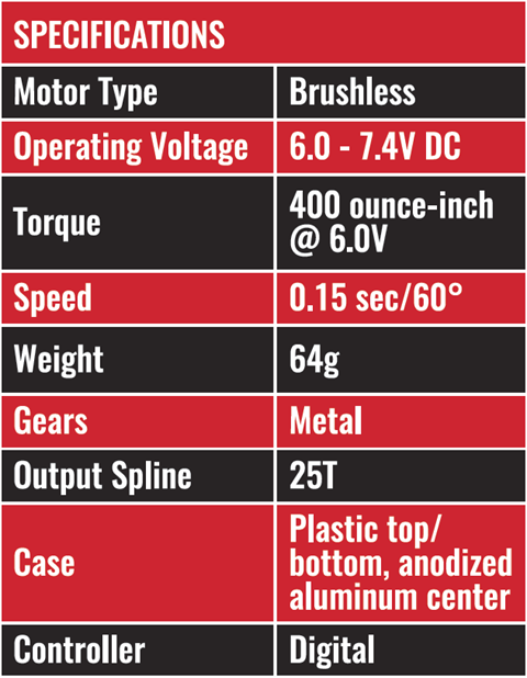 The High-Torque Blue 330 features a powerful coreless motor for 330 ounce-inches of torque. The High-Torque Red 400 utilizes cutting-edge brushless motor technology for even faster transit speeds and a massive 400+ ounce-inches of torque for the most demanding applications. A single High-Torque Red 400 servo provides nearly double the power of the stock E-Revo servos combined and saves valuable weight. Both servos provide massive power for high-demand applications like the Traxxas Unlimited Desert Racer.
