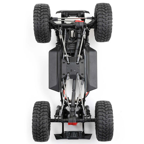 Axial also incorporates a clipless mounting system for the Pro-Line Coyote body, enhancing the rig’s looks by eliminating visible body clips. The body is hinged at the rear and removes completely for effortless chassis access. There are no clips to fuss with and lose. For the best performance on the trails, the body is pinched in the front, dovetailed, and bobbed in the rear, and only as wide as necessary. It slips through narrow obstacles and allows ample tire clearance and suspension articulation.