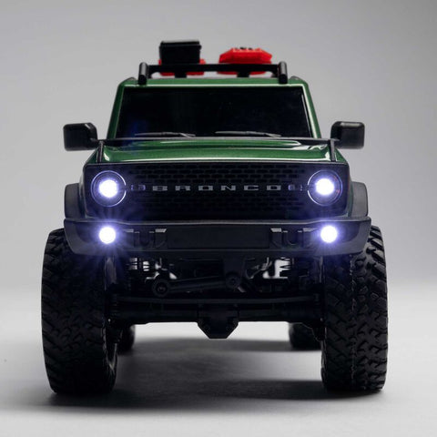 For maximum realism, working lights are included on the front corners of the scale Ford Bronco body and in the front bumper. All four corners of the body feature molded lenses.