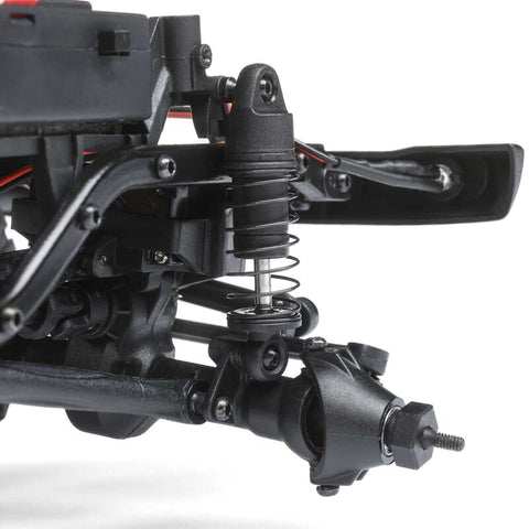 The front and rear axles consist of a two piece, molded composite solid axle design. For optimal handling, the SCX24 suspension features a three-link front and four-link rear setup.