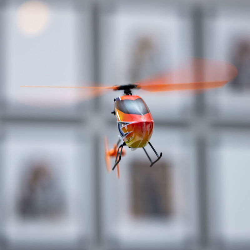 Fixed pitch rotor blades provide ample thrust that’s not intimidating, even for first-time pilots. Flybarless head design offers a higher level of mechanical efficiency as well as a lower parts count which makes helicopter maintenance simpler.