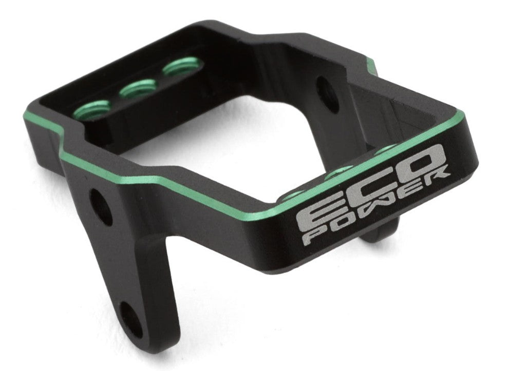 Eliminate unwanted flex found in stock composite mount while tremendously enhancing your Traxxas TRX-4M durability and steering precision with this robust EcoPower aluminum servo mount. Constructed from high-quality CNC-machined aluminum for a precision fit and designed to be a direct fit with no modifications required, this optional servo mount is the ultimate upgrade for your TRX-4M platform and a must-have for higher torque servos! With its stylish black and green anodizing and the laser-etched EcoPower logo, this servo mount will look as good as it performs! This mount is compatible with EcoPower ECP-827 & ECP-640T servos and many other micro/mini servos (24mm x 12.75mm opening) with either 2 hole or 4 hole servo mounting styles.