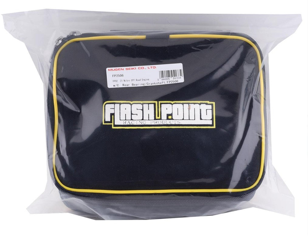 The Flash Point FP02 .21 3-Port Competition Nitro Buggy Engine combo includes the FP2500 Pipe-Manifold Combo, and features a long stroke design that provides exceptional low to mid-range torque, with great fuel consumption. Based off the Spec 2 configuration, the FP02 now includes a DLC coated crankshaft, black case, and black 21J carburetor. The FP02 is a great choice for use in nitro buggy and truck applications.
