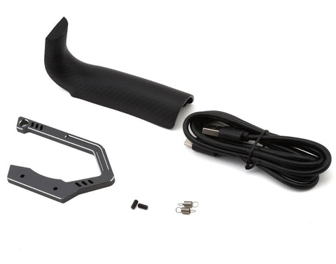 Designed for comfort and adaptability, the adjustable trigger return force allows users to fine-tune their throttle response. The handwheel features infinite positioning with physically adjustable travel distance, catering to different driving styles. The sleek metal handle, Kevlar-patterned finish, and rubberized grip provide a premium feel with superior control.
