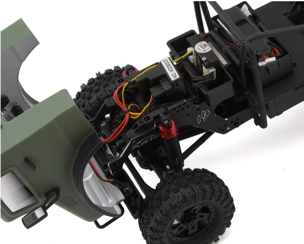 Prepare to be amazed by a micro RC crawler that seamlessly blends breathtaking scale realism with cutting-edge performance. Featuring an ultra-detailed Unimog-inspired hard body, powerful Furitek brushless electronics, and a robust chassis engineered for extreme durability, this crawler is designed to conquer any terrain with style and precision.