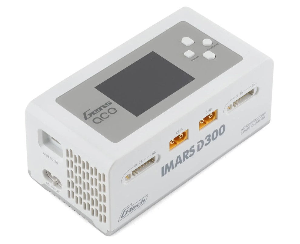 This is the Gens Ace Imars D300 G-Tech Smart Dual AC/DC Charger. Super versatile, powerful, compact and extremely user friendly, this Imars D300 charger is nothing less than amazing! Features a small and lightweight portable design with a wide IPS display, built-in DC power source for different devices, advanced safety features and the G-tech smart charging system all in one elegant black or white case for you to pick from. Get this Imars D300 G-Tech smart dual AC/DC charger and experience all the mighty power and versatility in a super compact frame.