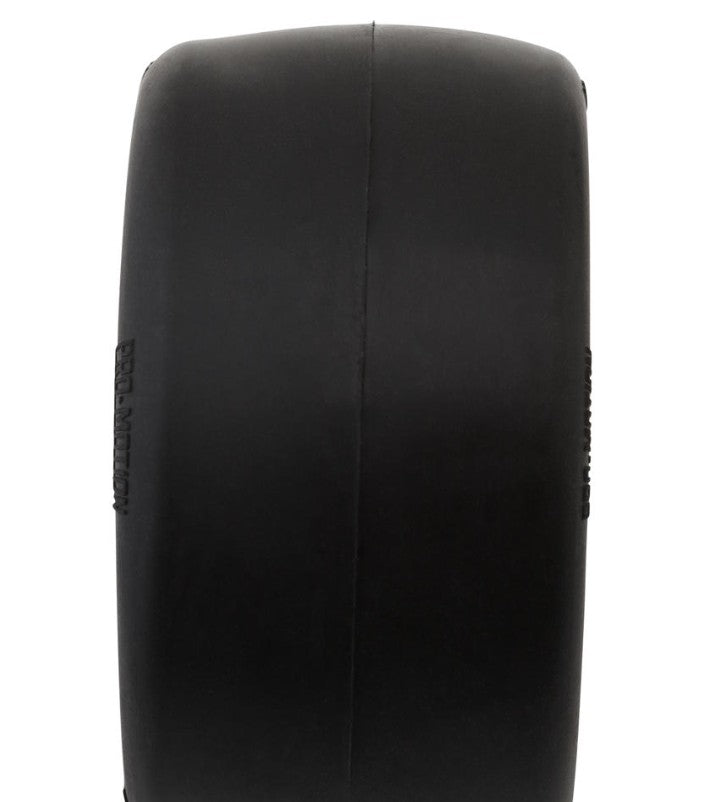 Pro-Motion Slicks 2.2'' Rear Buggy Slick Tires Pro-Motion Slicks were designed to feed the need for today's indoor high bite clay surfaces. The shape and profile was designed to maximize the contact patch of the tire, while still providing stability with the refined carcass design and thickness. Elevate your buggy performance and get faster laps with these Pro-Motion Slicks!