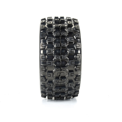 Pro-Line Badlands tires are known for having a sweet Motocross inspired tread and the Badlands MX43 tires kick that up a notch with a Bigger and Bolder knobby tread that matches modern MX tire design. These tires have been developed from the ground up for extreme X-MAXX® punishment with an ultra-durable compound that prevents tire ballooning even at high speeds. The Badlands MX43 features Pro-Line's groundbreaking proprietary Pro-Loc Technology that creates an ultra-secure bond to Pro-Line's Limited Edition Impulse Pro-Loc X-MAXX® wheels while still being removable when required. The Badlands MX43 is a true All-Terrain tire that will find traction on any surface but is best suited for loose & loamy dirt, mud or grass.
