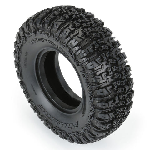 This is a pair of Class 1 Trencher 1.9" Rock Crawling Tires. The future of Class 1 Tire Performance has arrived with Pro-Line's 1.9" (4.19" OD x 1.49" Width) Trencher Tire! Inspired by Pro-Line's insanely popular all-terrain Trencher tread, this tire is ready for anything the terrain might throw at you. It features an extremely aggressive tread pattern with each tread block containing multiple sipes and multiple levels for incredible tread flex while still looking great on a Scale Rig. The highly detailed connected tread on the sidewall of the Trencher extends out for the next level of side-hilling performance that only slides out when you want it to!