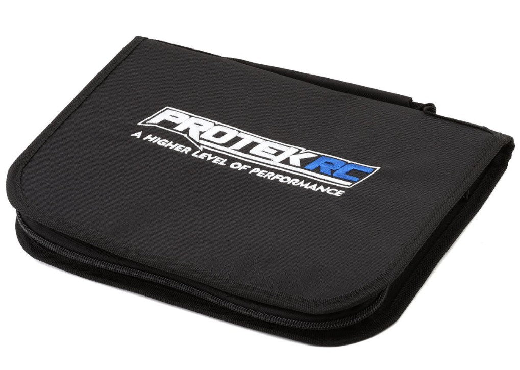 The ProTek RC "TruTorque" 1/10 Tool Bag Set is a premium solution for organizing and protecting your essential RC tools. Designed with durability and functionality in mind, this tool bag is crafted from high-quality materials to withstand the rigors of frequent use. With space for up to twenty-four tools, you no longer have to decide which tools to bring to the track or field. The bag features two compartments with elastic compression straps to hold tools securely, accommodating tools up to ten inches in length! Whether you're a racer, crawler enthusiast, or working with nitro models, this bag is built to keep your tools in perfect working order while offering easy access during maintenance.