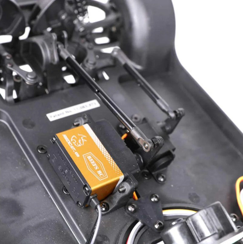 The SixtyFour is crafted for smooth cruising and trick performance, thanks to its advanced suspension system. Equipped with specialized servos and precise weight distribution, it delivers an authentic lowrider or hopper driving experience. Recent upgrades include a powerful 4KG metal gear steering servo, Hexfly Torque Spec 35KG rear lifting servos, and a custom-built ultra-fast Reefs V2 hopping servo. An adjustable front longitudinal hopping bellcrank, along with black-finished steering and suspension links, enhances both its performance and sleek visual appeal.