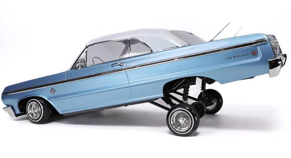 The Redcat SixtyFour Chevrolet Impala SS Classic 64 edition is a 1:10 scale, ready-to-run RC lowrider inspired by the iconic 1964 Chevy Impala SS 2-door hardtop. It features magnetic body mounts, an upgraded hopping bellcrank, enhanced servos, black suspension links, redesigned rims, tires, and comes in three color options. Since its launch in November 2020, the SixtyFour has become a hit among automotive and lowrider enthusiasts, delivering exceptional detail and functionality with a six-channel radio, battery, and charger included.