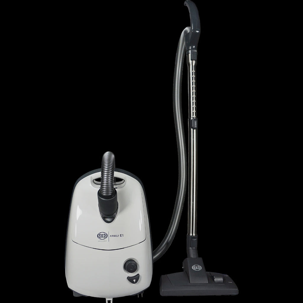 The SEBO Airbelt E1 Kombi is a mid-size, lightweight canister vacuum, attractively designed but with powerful performance and hospital-grade filtration.