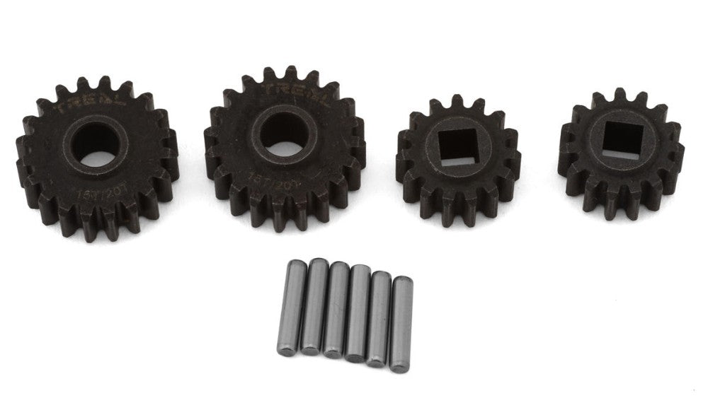 Treal Hobby Axial SCX10 III Hardened Steel Portal Gears. These gears represent an excellent upgrade, typically applied to the front end to accelerate the rotation of the front wheels in relation to the rear. Utilizing these gears can notably enhance the performance of both the SCX10 III and Capra. To achieve a front-dominant feel, install these gears in the front, while using them in the rear end will create a more rear-dominant feel.