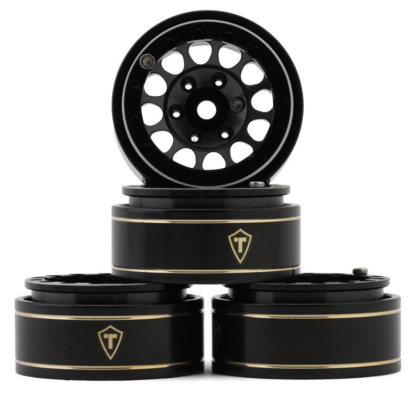 Treal Hobby Type I 1.0" Classic 12-Spoke Beadlock Wheels. Constructed from top quality CNC machined aluminum with interchangeable brass center rings, These optional beadlock rims are intended for 1/24 and 1/18 Scale rock crawlers to enhance scale realism, style, durability and performance! Features a scale 12-Spoke rim with an easy to mount beadlock design and removable hex hub, to use different hub types and tune your offset to your liking and driving style! In addition, multiple colors are available to choose from allowing you to customize the look and style of your rig all while adding 108.8g of total unsprung weight down low to improve the lower center of gravity for enhanced and more stable crawling performance!