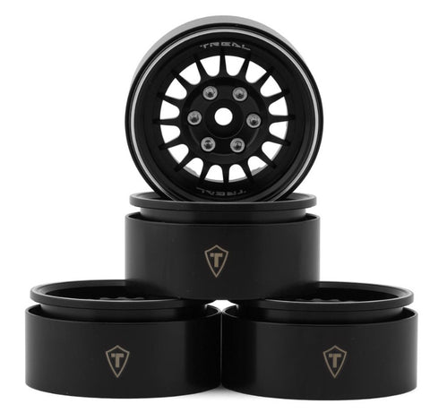 Treal Hobby Type N 1.9" Multi-Spoke Beadlock Wheels. Constructed from top quality CNC machine aluminum with interchangeable iron heavy center ring, These optional beadlock rims are intended for 1/10 Scale rock crawlers to enhance scale realism, style, durability and performance! Features a scale Multi-Spoke rim on an easy to mount beadlock design and removable standard 12mm hex hub, to use different hub types and tune your offset to your liking and driving style! In addition, multiple colors are available to choose from allowing you to customize the look and style of your rig all while adding 486.4g of total unsprung weight down low to improve the lower center of gravity for enhanced and more stable crawling performance!