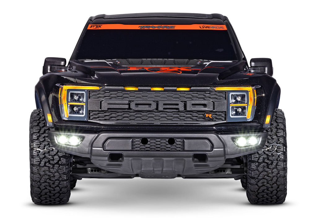 The officially licensed Ford® F-150® Raptor R™ Pro Scale® body brings unmatched realism with molded scale details including bumpers, grille, hood vent, and side mirrors. LED lighting in the front and rear bumpers adds extra visual impact, while a reinforced clipless mounting system provides a clean look and quick access with no posts or body clips.