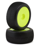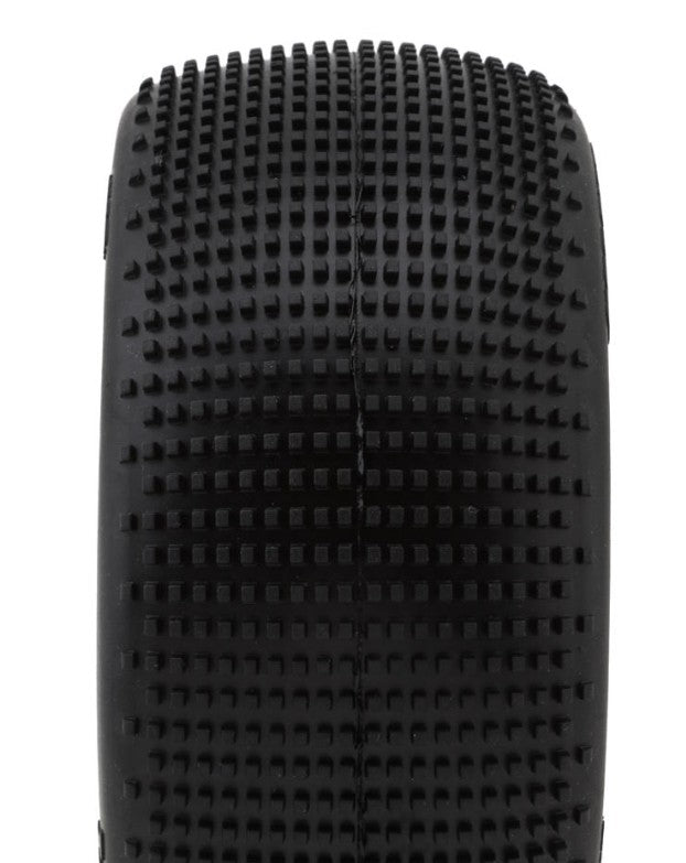 The TZO Tires 402 1/8 Truggy Pre-Glued Tire Set are a medium pin square lug tire that is designed to work best on grooved up hard packed tracks. It excels on dry high grip tracks. The tire is designed with the lugs close together to maximize the surface area of the tire on the track, but the center lugs are wide, opening up the tread in order to provide exceptional forward bite, and to allow for grip in dust. The edges of the tread are rounded to reduce the chance of the tire catching ruts and bumps. This tire is great for the driver that prefers more of an edgy feeling car. Package includes two pre-glued tires with foams and two wheels.