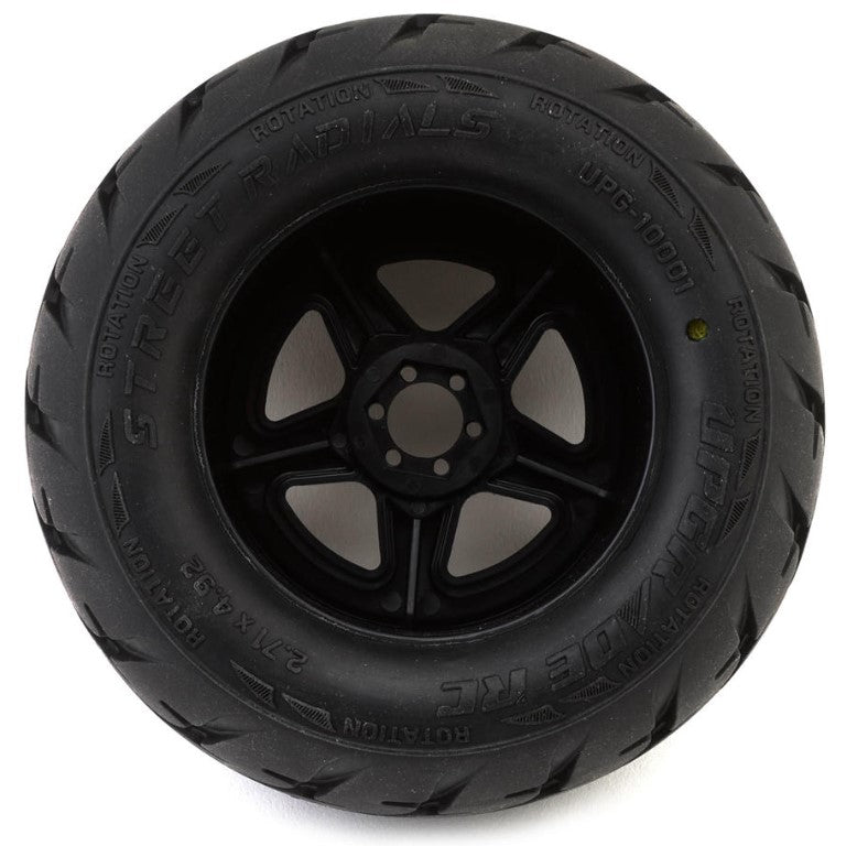 UpGrade RC Tires are the perfect choice for your bashing needs. These Street Radials 2.8" tires come pre-mounted to 5-Star wheels and feature a molded 17mm hex. Using the included hex adapters, this tire combination can also be mounted to RC vehicles with 12mm and 14mm hexes. Made with UpGrade RC's soft compound, these tires are ready to grip into action and keep bashing.