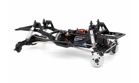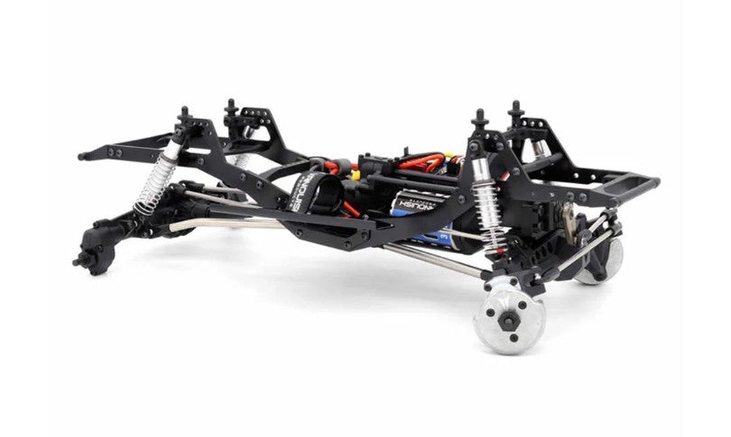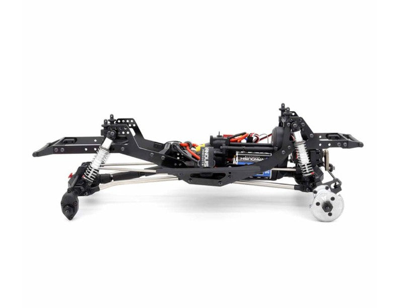 At the core of the VRD Stance RTR is a performance-driven chassis featuring stamped aluminum frame rails, a 6-degree angled skid plate, and low-mounted electronics for an ultra-low center of gravity. The flat rock sliders provide protected mounting points, while the molded chassis components offer multiple tuning options for shocks, body mounts, and bumpers, giving drivers the versatility needed for tough terrain.