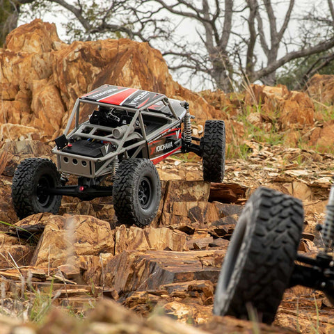 Styled after buggies that are designed to conquer difficult trails, the H10 caged chassis design allows for full view of the Yokohama Geolandar M/T’s. The H10 axles feature an increased width over the F10 axles and incorporate a scale hydraulic ram style steering. The servo is hidden behind the axle and tucks into the chassis during the suspension cycle, preserving the scale look while providing optimal performance. A 13.25” wheelbase and increased track width offer a new level of stability and capability with this 1.9 trail truck.