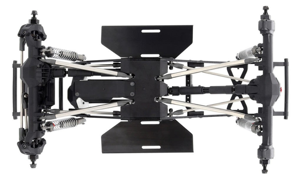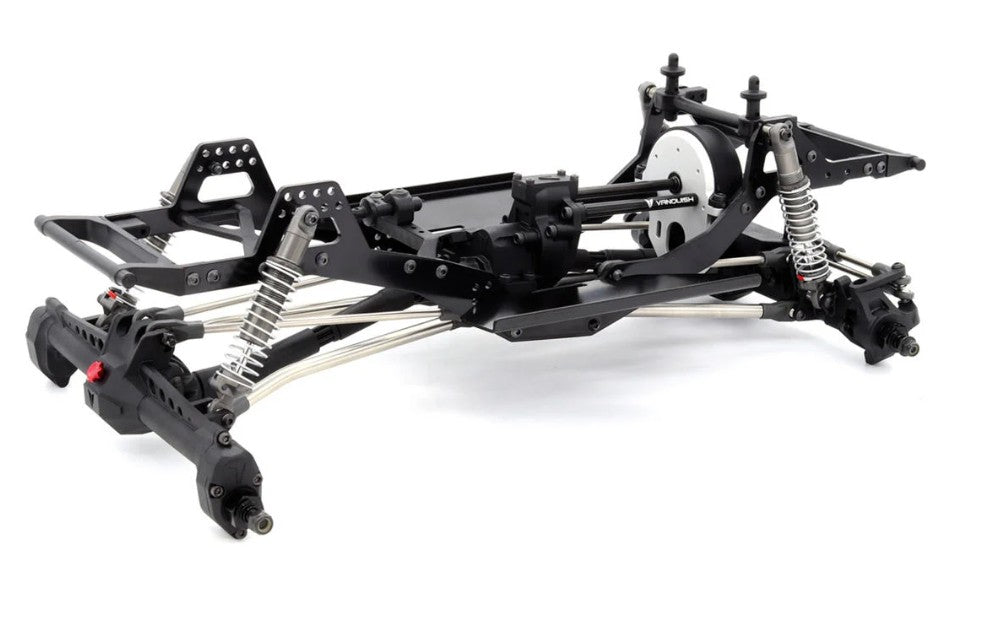 The Vanquish Products VRD Mullet Kit is built on a competition-proven platform with the S25 chassis optimized for a unique front F10 straight axle and rear F10 portal axle configuration. Molded chassis components, adjustable multi-point body mounts, and stamped aluminum rock sliders create a tunable and durable foundation for demanding terrain. Minimal front and rear overhang improves clearance, while multiple shock and body mounting points allow precise fitment.