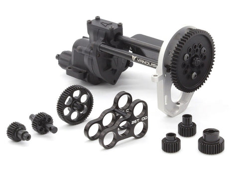 At the heart of the VRD Mullet Kit is the Carbon Spec VFD Transmission, featuring lightweight machined chromoly gears, aluminum bearing plates, and a 21% internal overdrive. The front F10 straight axle includes underdrive machined ring and pinion gears, while the rear F10 portal axle uses overdrive gears for a final 34% total overdrive. This combination delivers predictable, versatile, and highly competitive crawling performance.
