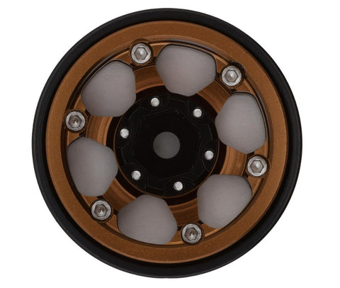 Treal Hobby Type D 1.0" Concave 6-Spoke Beadlock Wheels. Constructed from top quality CNC machined aluminum with interchangeable brass center rings, These optional beadlock rims are intended for 1/24 and 1/18 Scale rock crawlers to enhance scale realism, style, durability and performance! Features a scale 6-Spoke rim with an easy to mount beadlock design and removable hex hub, to use different hub types and tune your offset to your liking and driving style! In addition, multiple colors are available to choose from allowing you to customize the look and style of your rig all while adding 84.8g of total unsprung weight down low to improve the lower center of gravity for enhanced and more stable crawling performance!